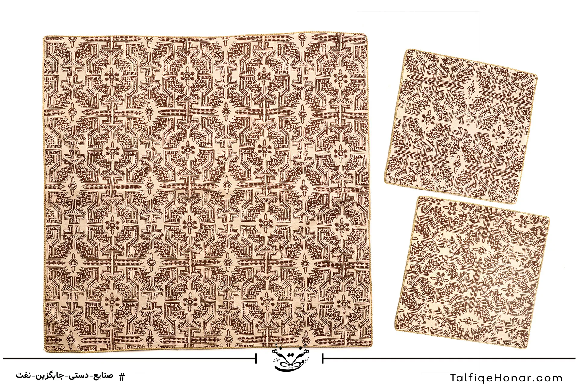 - ست رومیزی و کوسن سه عددی با پارچه نخ پنبه چاپ قلمکار