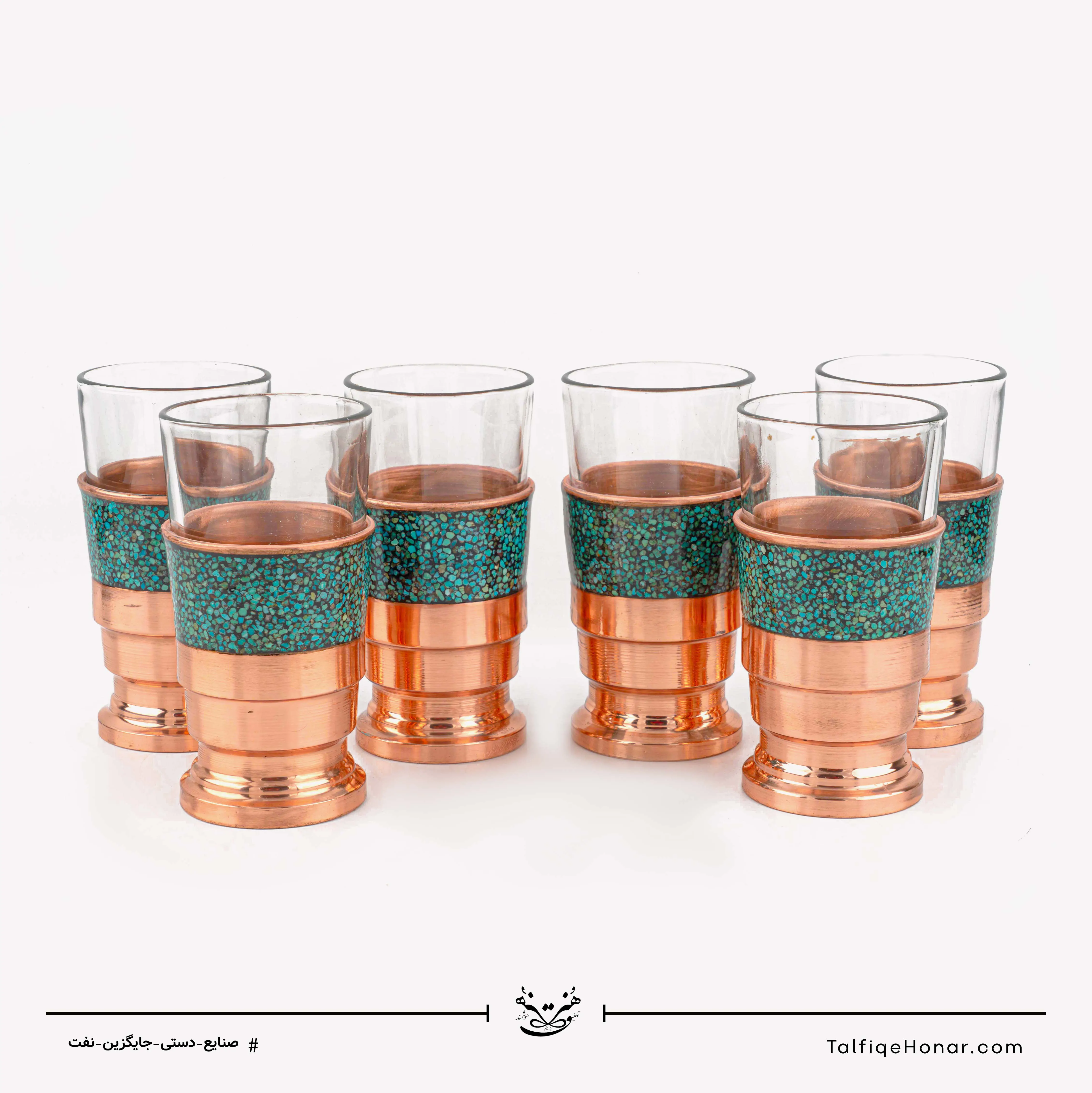 سرویس 6 نفره شربت خوری مس فیروزه کوبی
